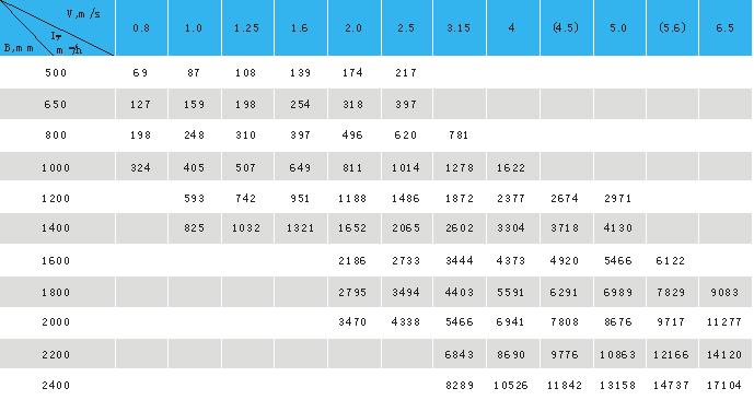 帶速V、帶寬B與輸送能力IV的匹配關系